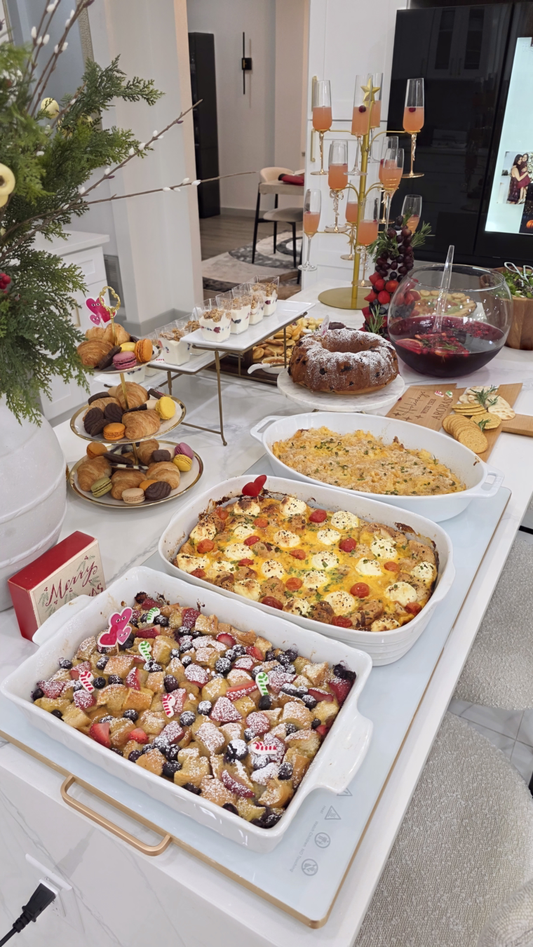 Celebrating the holiday brunch has become an annual highlight for us, as it exudes a magical atmosphere. This past weekend, we played host to our friends for a Holiday Brunch and it was an absolute joy for everyone. To elevate the festive spirit, we decided to bring in a Santa character, providing our friends and family with the unique opportunity to capture Santa pictures in the comfort of our home, eliminating the need to wait in long lines at the mall. This addition brought a fun element to the entire brunch experience! Here is a quick glimpse of our 2024 Brunch- Holiday Brunch 2024 Video & our 2025 Brunch- Holiday Brunch 2025 Video.